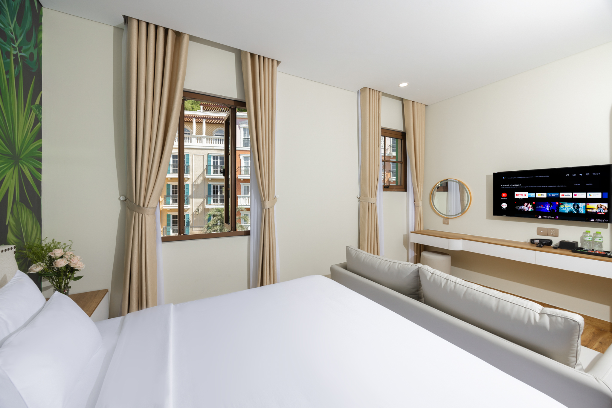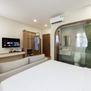 - Ban công riêng biệt: Một trong những điểm nhấn đặc biệt của phòng chính là ban công rộng rãi, nơi bạn có thể ngồi thư giãn, hít thở không khí trong lành và ngắm nhìn khung cảnh tuyệt đẹp của Phú Quốc.
