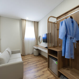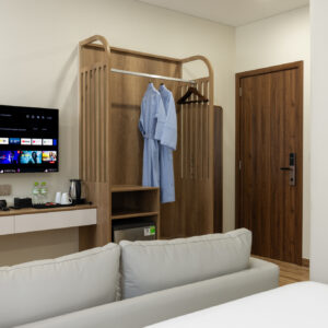 - Tủ quần áo rộng rãi với két an toàn để bảo vệ tư trang cá nhân.